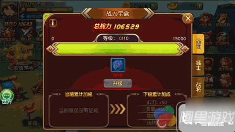 根据玩家拥有的全部战将的战斗力总和来决定是否可以提升等级。当全部战将的战斗力总和达到等级需求时,玩家付出一些战力符石即可提升等级,从而对所有战将进行加强。
