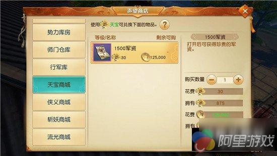 30天宝声望和125000金币可兑换1500军姿,天宝声望可通过跑拓拓获得。