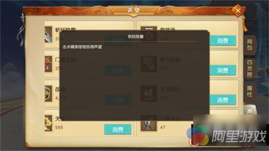 比方说看到自己斩妖除魔声望很多,但是拿去消费,发觉还差了那么一点点,不知道如何获得更多的声望。则这个时候可以点击“斩妖除魔”的图标,则会显示出以下的内容,然后玩家可以通过该活动声望获取的介绍来进行参与活动,更快的得到更多的声望。