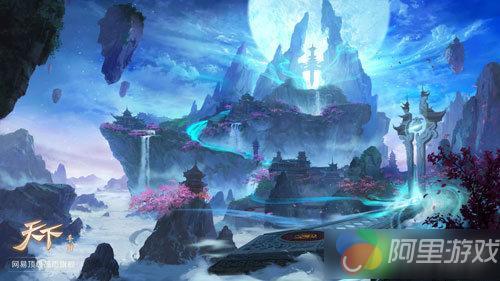 《天下手游》的场景从设计开始就独居匠心,原画师们不但为传承的风景添加了灵动的活力,更是为其赋予了新的意象,蕴涵了更多引人入胜的思绪。白水台原画中,夕阳西下,流水潺潺,紫气缭绕的云雾,倒映水中的白水台,让人仿若置身仙境之中。还有那缓缓升起的孔明灯,又寄托着谁人的相思,都是设计者独居匠心的构思,只为营造一种唯美浪漫的氛围,刻画最细腻动人的情感。 一种“塔影倒垂淮浪底,钟声摇落碧云间”的诗意油然而生。