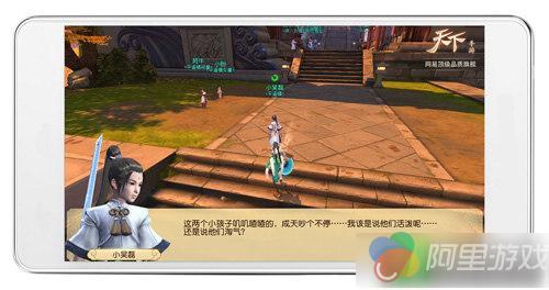 玩家在九黎城南可以找到吴磊NPC,NPC完美复刻吴磊面貌,身着白袍,眉心一点红痣平添几分灵气,更可以听到吴磊元气满满的真人声音,向你倾情安利他最爱的《天下》手游。