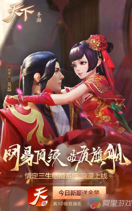 真3D极致画面,无缝大世界,网易顶级品质旗舰《天下》手游现已全平台开启。《天下》手游代言人国民弟弟吴磊带你零门槛畅玩,更有网易游戏大玩家丁磊组建“上天陪玩团”,与全天下玩家乐享上线好礼。《天下》手游匠心打造各种社交玩法,师徒系统、家园系统已经上线,引领手游社交多元唯美的新风潮。结婚系统今日正式上线,用最唯美的仪式为情定三生的情侣们见证爱与幸福。执子之手,情定大荒,全服共同欢庆婚礼时刻!
