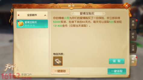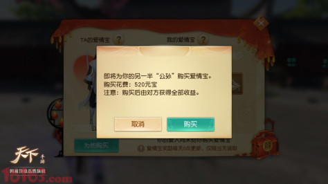 “爱情宝”是《天下》手游首款专为情缘玩家定制的保险产品。玩家可以通过情缘界面直接购买。在购买时,爱情宝将指定婚姻关系的另外一人作为受益人,受益人在爱情宝生效时立刻获得一笔军资收益。