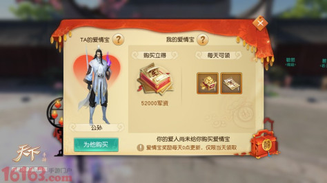 爱情宝在来得轰烈的同时,也体现了天长地久细水长流的爱情观。玩家购买爱情宝后,在维持双方情缘关系前提下,受益人在接下来60天内享受收益,每天上线即可获得520军资、131400金币的返利。但若两人情缘在爱情宝有效期内中止,返利获益也随之停止。