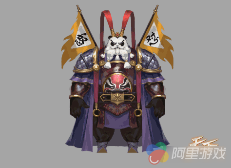 而全新的恶来兽亦是如此,“人生如戏,又何须锱铢必较,徒增怨怼。”恶来甫一登场宣言就霸气侧漏,尽显王者风范。与宣言同样令人过目不忘的,就是恶来的京剧风外观。头顶亮红色雉鸡翎气贯长虹,以蓝紫色为主色调的战袍威风凛凛,身后两面大旗,一幅写了“怼”一幅写了“怒”,虽霸气如战神,但也透出几分微妙的呆萌感。