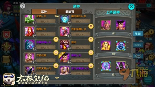 一排:孙悟空、哪吒。两个都是东方神话人物,搭配起来也是相得益彰。一排武神的作用主要是抗过对面的第一波爆发,哪吒和悟空都不容易死,变身大圣几乎无敌,还有罩子免伤,哪吒能提供不俗伤害。看准时机切换三组武神,尽可能在变身期间解决掉对面的武神,对方血量能磨掉一点是一点。在强大的减伤覆盖下,都不用担心被破防,只要在变身快结束的时候注意下走位就行。