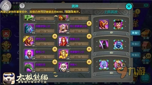 在《太极熊猫》中副本的星级是按照通关时间来评定的,所以人物的伤害和武神选择至关重要,很多时候一两秒的就是能否达到三星的关键。对于不同的地图和BOSS,应该采取不同的作战策略,比较通用的搭配可以采取一组冰鸟+火鸟,二组带印记哈迪斯+汉克。