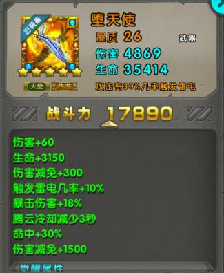 武器:堕天使,精8之后有30%命中、18%爆伤。相对死神和海洋武器来说属性并不差,而且可以缩短2技能和汉克1技能CD。对于平民来说汉克1技能CD减免十分强大。