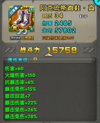 鞋子:阿克硫斯跑鞋,突破4有30%暴击、69%爆免、22%爆伤。三爆流比较热门鞋子有死神鞋、撒旦鞋等等,但是阿克硫斯跑鞋拥有超高的爆免,可以大幅提升玩家的防御能力。尤其是现在大部分玩家都实现了26品戒指突破4,破防迅速,所以防御也变得非常尤为重要。