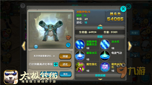 2、璀璨冰花--技能释放过程中,每次被攻击,冰炮神龟都有50%几率(初始几率5%,每级加几率5%)会回复自身3%最大生命。
