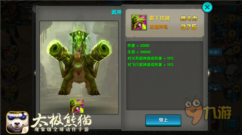 转生是对现有武神属性及技能的一种增强,武神转生之后除了拥有更加强大的属性之外,武神的稀有技也会在原先基础上得到强化。而针对转生武神,《太极熊猫》还开设了武神皮肤系统,让武神能力增强的同时,外形更加炫酷!转生之后的武神培养路线将大不相同,完全的另类养成。武神转生的加入必将对武神搭配产生巨大的变化,各种新式组合将层出不穷,趣味体验更加丰富。