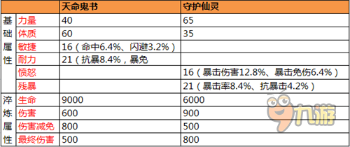 法宝提供属性分为基础属性和淬炼属性,其中淬炼属性提升的是生命、伤害、伤害减免和最终伤害,跟普通装备提供的属性比较相似,而基础属性提供的力量、体质、敏捷、耐力、愤怒和残暴,目前法宝有两种,一个是天命鬼书、另外一个是守护仙灵,守护仙灵偏向于攻击,而天命鬼书偏向于防御,具体的属性区别如下: