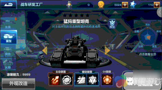 重型坦克:高攻,低机动,厚血,中等锁定速度,对主战坦克有额外伤害加成。