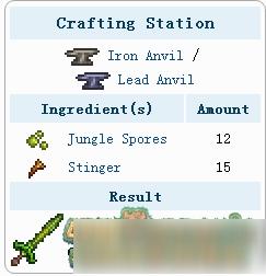 用12个蜂刺和15个丛林孢子在铁砧或者铅铁砧上合成>>泰拉瑞亚丛林孢子有什么用 丛林孢子合成表大全