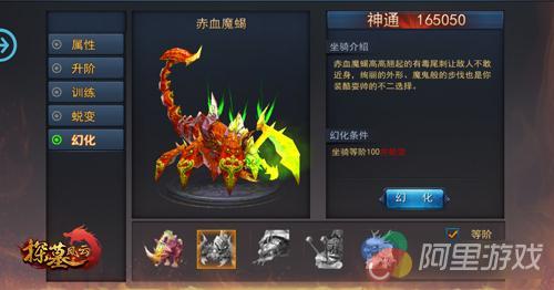 赤血魔蝎是通过100阶狂暴犀牛蜕变而来,赤血魔蝎的造型较为奇特惹眼,红绿配色存在感十足,而且无论是移动速度还是属性加成方面都已十分理想。