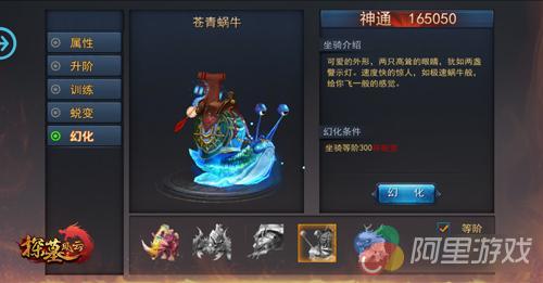 需要坐骑达到300阶蜕变而来,体形颇大,蠢萌喜感,属性加成极高,速度亦是目前坐骑中最快的,人气居高不下。
