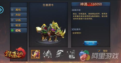 狂暴犀牛是游戏初始坐骑,玩家在达到70级便会收到系统赠送。狂暴犀牛的形象十分敦厚健壮,但属性加成也只算是中规中矩。