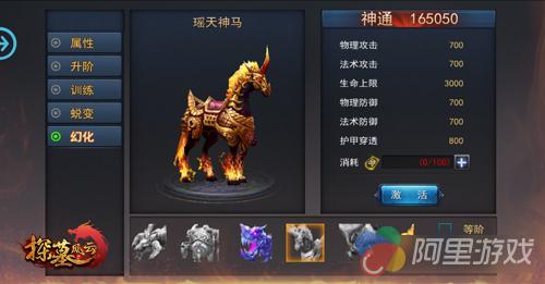 瑶天神马可通过“英雄敬仰”来积累次数解锁获得,此款坐骑速度很快,属性加成也十分可观,四肢散发火焰,人气颇高。