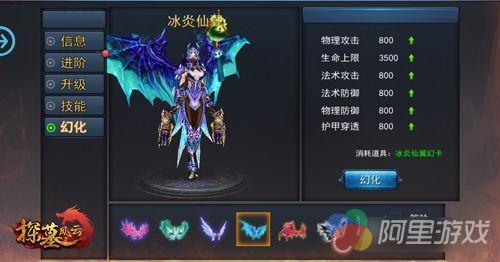 冰炎仙翼:获取方式十分不易,通体蓝色,散发幽幽冷光,特效华丽,属性加成也有了质的提升;物理攻击+800、生命上限+3500、法术攻击+800、法术防御+800、物理防御+800、护甲穿透+800。