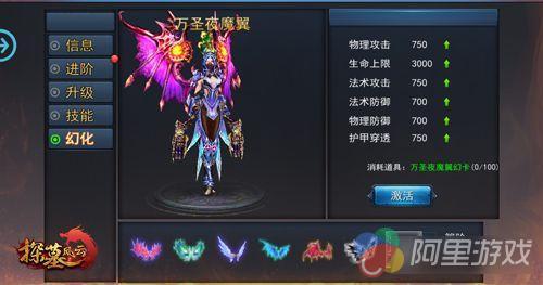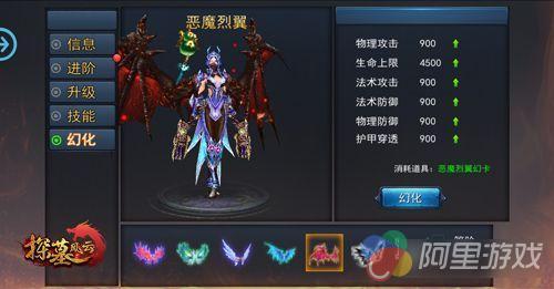 恶魔烈翼:所有时装中最难获取的一款,需要满足特定VIP等级才能够解锁,整体暗红,龙骨突出,威慑力十分强大,这是一双来自地狱的翅膀!属性加成自然也是目前最高,拥有物理攻击+800、生命上限+4500、法术攻击+900、法术防御+900、物理防御+900以及护甲穿透+900的逆天加成。
