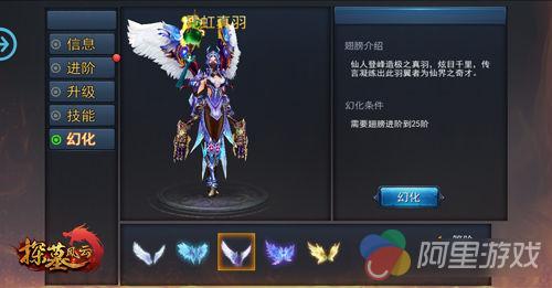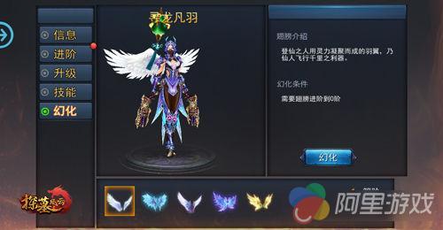 光辉凡羽:羽翼达到10阶即可 解锁,光辉凡羽开始拥有多色元素,并拥有霸气龙骨,颜值大增。