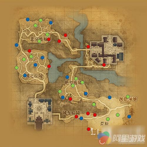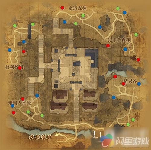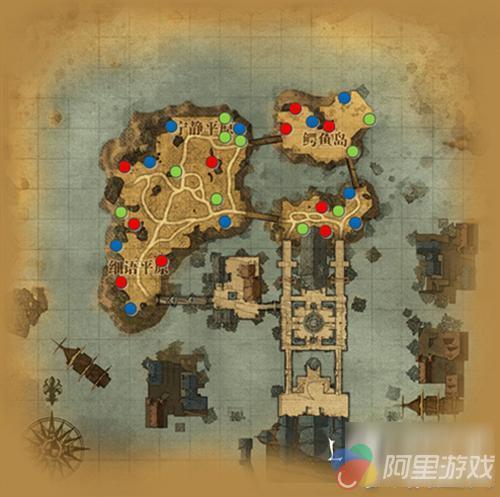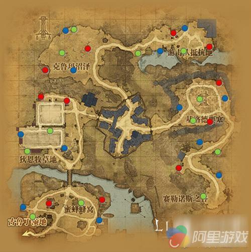 这些藏宝地点之中红色点代表华丽的次元之箱,蓝色点代表精致的次元之箱,绿色点表示朴素的次元之箱。