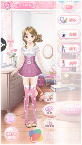 顾名思义,换装游戏的核心当然是换装啦!但其实,游戏玩得又不仅仅是换装,毕竟“装扮”是一个大概念。与此前面市的许多换装游戏不同,《甜甜萌物语》在这方面去做出了许多创新。游戏中除了换装之外,更是加入了“换妆”系统。玩家可以在妆容菜单中帮助女主角换面妆、美瞳、睫毛,甚至可以美甲。这些细节设置在其他的换装游戏中是很罕见的。