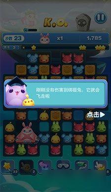 绑匪兔作为消除目标出现在棋盘中,只有把它的血值全部清空,才能够成功消除。如果本回合没有对绑匪兔产生伤害,绑匪兔便会发生位置移动,棋盘布局随之变化。因此,当绑匪兔出现在棋盘中时,玩家们需要尽快地制作出更多的特殊棋子,产生强大的攻击,这样才可以更快清空绑匪兔的血量。