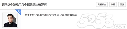 近日,贴吧中再次有玩家发问:“这个游戏用几个手指玩比较好啊,两手配合还是单手用四个指头玩,还是用大拇指玩?”楼下吧友纷纷发表意见,有说大拇指比较爽的;有说两指就够了的;还有玩家表示自己是双食指转双拇指,感觉拇指好一些;也有人是双手食指中指一起上;更有人是五根手指,左二右三。