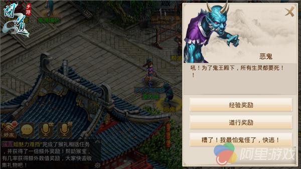 天墉城中各处都可能存在着恶鬼,为了百姓们的生活,道友们自然是不能置之不理。但是恶鬼比较强大,因此要求等级达到30且至少三人组队才能降服它哦,道友们赶紧叫上小伙伴们一起上吧。每个道友每天都能降服十只恶鬼,每一次降服恶鬼所获得的奖励都是可选的,是道行还是经验都由队长来选哦。
