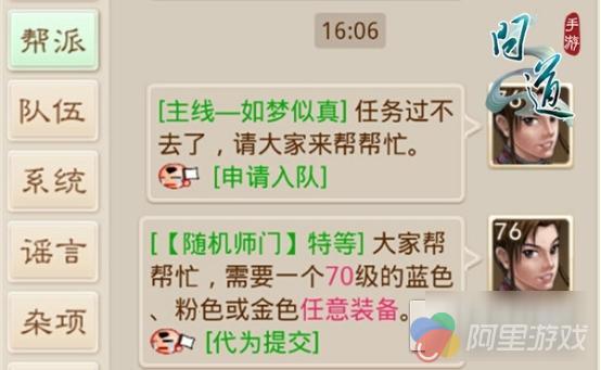 主线、剧情任务增加了帮派求助选项,道友们在进行主线与部分剧情战斗时可通过 NPC 选项向帮派成员发起求助,帮派成员收到求助的消息后可以直接申请,帮需要的道友过任务。