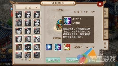 游说之舌:对敌方使用,可降低敌方的战斗能力,对敌方宠物使用,可使其忠诚度降低,若忠诚度过低将会使其离开战斗!这个技能在很多的宝宝上都有见过,这种离间的能力在PK时也是非常不错的哦!最终造成多打少的局面对我们相当的有利!