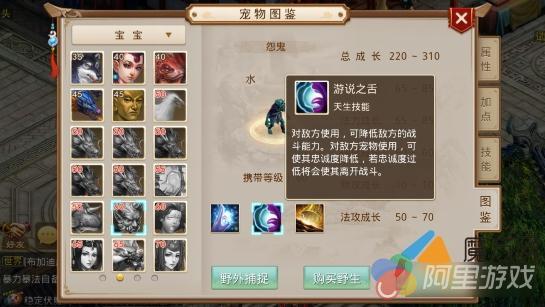 游说之舌:对敌方使用,可降低敌方的战斗能力。对敌方宠物使用,可使其忠诚度降低,若忠诚度过低将会使其离开战斗。