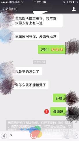 “原本只是打算先简单发展下感情,结果当晚被邀请去其房间就忍不住在贴吧炫耀了一下。结果去了之后”她“洗完澡出来就跟我主动表明了真实“身份”。这辈子我从来没遇到过这种事,当时的第一反应就是跑,简直太可怕了。”那名男玩家第二日这样说道。