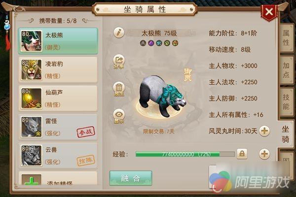 1、低阶融合:初始阶位为 2-4 阶的的骑宠(即精怪或者御灵)可进行的融合,融合成功后主宠的能力阶位+1,融合失败则阶位不变,融合后最高可以达到的能力阶位为 5 阶。