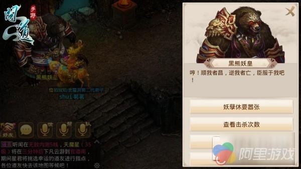 战斗玩法方面,此次主要推出了全新的擂台争霸和超级大 Boss 这两个系统。首先超级大 Boss 系统每周会开启 6 天,道友们可以组队去刷黑熊妖皇和血炼魔猪这两大 Boss,赢取奖励甚至首杀荣誉。奖品丰厚但难度和要求也很高,超过 100 级才能发起挑战,新服里还比较少有这么高级的玩家,所以组队比较困难,其实更适合在旧服修炼已久的老玩家挑战。