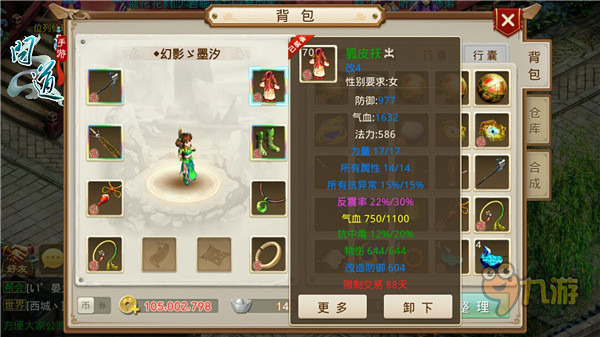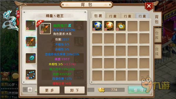 炼化套装,金色装备+超级绿水晶,可以炼化绿色的套装,炼化可选择五行相性,成功率100%。绿色套装除了多1条绿色属性外,还会增加1条套装属性,套装属性受套装的五行相性影响。套装属性需要齐集同相性同等级的装备才会点亮生效。当道友穿上同等级同相性的套装后,人物形象将会变化,还附加套装效果。