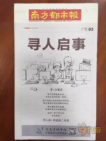 《问道》手游专属寻人站wendao.com上线,旨在帮各位道友千里寻人。我们在乎你说的曾经,更在乎你的现在。现在,当年的那些人是否还在你的身边,你是否也想在茫茫人海中找到那些和你一起战斗的兄弟,那个带你入门的师父,那个给了你青春初体验的TA。《问道》手游投入千万广告资源寻人,目前在上海美罗城和南方都市报等处都可看见,除此之外,寻人站还贴心的准备了寻人和重逢礼包,4月28日,游戏全平台公测后,道友们即可前往天墉城找到威风凛凛的NPC活动大使领取礼包使用啦。
