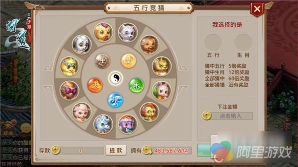 首部资料片中加入了五行竞猜的趣味玩法。感兴趣的玩家们可以前往天墉城NPC“五行竞猜使”处参与这个玩法。玩家们可以自由下注竞猜五行及生肖,猜中五行可获得5倍奖励,猜中生肖可获得12倍奖励,全都猜中可获得高达60倍的奖励。