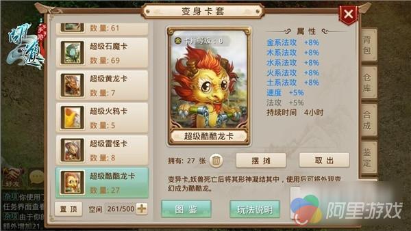 使用变身卡后,玩家们的自身形象便会变为卡片中的形象,同时获得卡片附加属性,在战斗中能发挥不小作用。当玩家们组队时,同组的玩家皆使用变身卡且组合成一定规律时,就会形成特殊的阵法效果,当变身卡阵法被激活后,还可同时激活变身卡阵法属性,获得除卡片本身加成以外的阵法属性加成。变身卡如何获得呢?首先可以通过在练功区打怪获得神木鼎,开启神木鼎消耗神木鼎点数获得;其次可以在集市购买获得;最后玩家们在通天塔历练时也有机会获得BOSS卡。