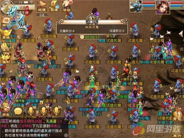 【激烈选拔】 周一至周六道友们可以选择任意一天来参与选拔赛,成功入场选拔赛的道友,系统将自动帮您传送至试道专用线路(该线路平时不开放登录),等待21:00活动正式开始。 活动分两个阶段:挑战元魔和巅峰对决。参与选拔赛的道友可以获得试道积分,以积分进行排名。若比赛未结束前,场内人数小于150人,则活动提前结束,场内玩家均获得参与本周对应等级段试道大会决赛的资格;若比赛结束时,场内人数仍大于150人,则依次按试道总积分、道行降序,取前150人获得参与本周对应等级段试道大会决赛的资格。