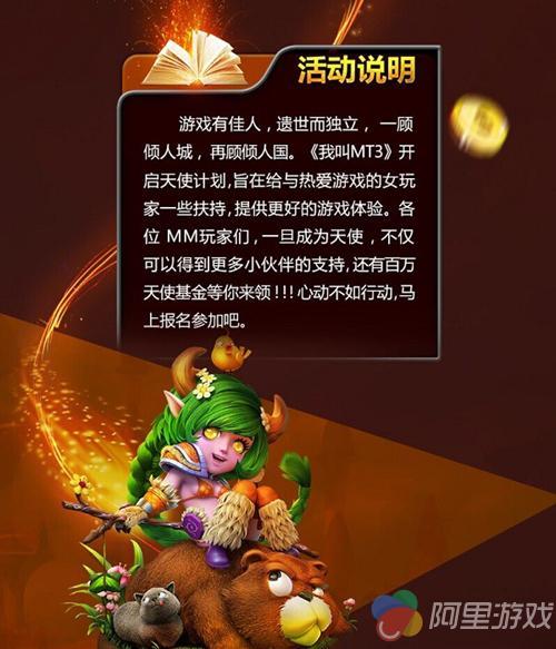 此次活动对象面向热爱MT的广大女性玩家。大师表示,此次活动旨在给热爱游戏的妹子玩家提供更多福利、更好的游戏体验,让弱势的女性群体拥有一个更大的娱乐空间。通过微博短链进入活动页面,我们得知《我叫MT3》天使计划将从5月5日开启并持续至5月30日。报名要求则很开放,只要对自己颜值有信心的女性玩家均可参与。