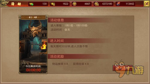 幻境副本-每日可以进行30分钟副本时间,可以获得8倍经验和物品掉落的奖励。幻境副本建议一定要和其他玩家一起组队进行副本,队伍成员越多,打怪的经验加成也越多。