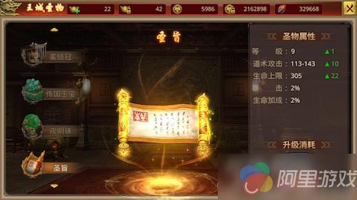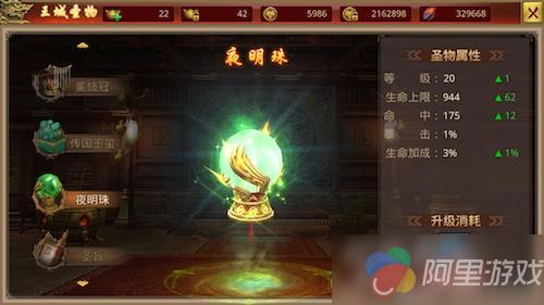 通过打怪收集而来的圣物材料,可对各种圣物进行升级。圣物等级越高,所附加在玩家角色身上的属性也就越高。