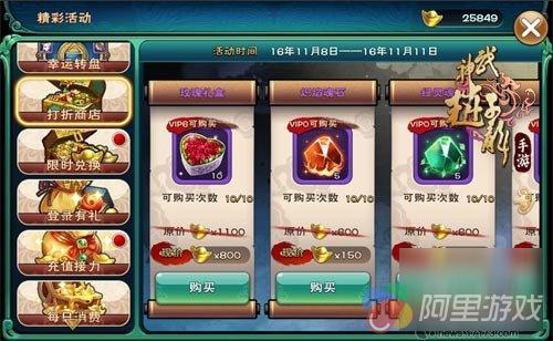 全民狂欢购物party双十一来袭,这种O2O全新购物模式让无数用户为之疯狂,而许多电商玩的折扣套路也引来许多吐槽。淘宝套路深,那就来“武神”!抢滩双十一来《武神赵子龙》手游里抄底,不玩套路只带给玩家最真实的优惠,各种道具、资源低价放送,最新的神将吕蒙也可以轻松获得了,还有非常丰厚的充值返利哦,一起来看看吧。