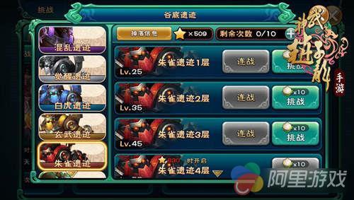 地底遗迹乃是一处蕴含着强大力量的神秘之地,以四圣兽为首的六大远古强者伫立于此,等待无数英雄豪杰青年才俊的挑战。而且,65手游《武神赵子龙》地底遗迹的挑战难度可谓是爆表,每个BOSS都拥有特性诡异的圣兽技,并且必须在20个回合之内击败。真正的考验谋略与微操,战力全开的挑战极限,每天只有10次机会,各路英雄可要好好把握哦!