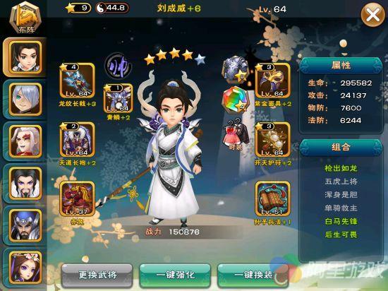 在65《武神赵子龙》游戏中,百名三国武将助阵,丰富的阵容组合搭配,燃尽你的大脑,如何排兵布阵,灵 活的调整自己的阵容阵型,武将如何搭配,让战力最大幅度的爆涨。你是高智商的谋略高玩还是弱鸡小白一秒见 分晓。在阵容系统中可以通过阵容模似器模似出最佳的武将阵容组合,所向披靡就在今朝!