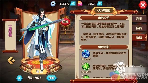 猴子酒:职业刀客,对敌方后排很有威胁性,技能伤害也很高,配合琴师可以做到七进七出,提高生存能力;