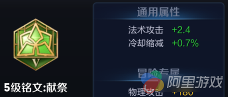 绿色:五级献祭,提供法术攻击2.4及冷却缩减0.7%