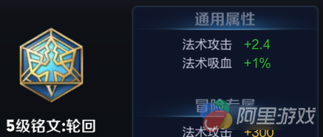 蓝色:五级轮回,提供法术攻击2.4及法术吸血1%